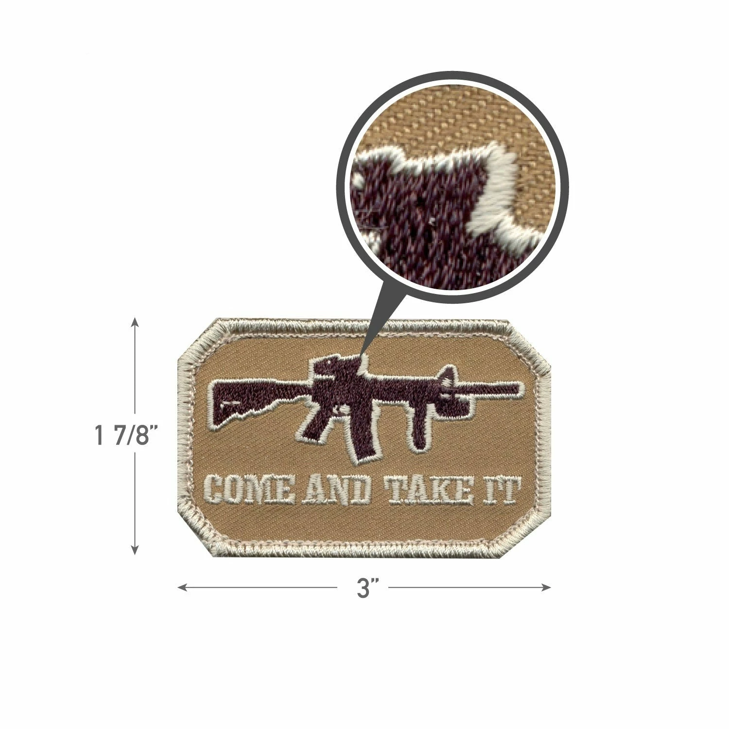 Rothco Come and Take It Patch is embroidered with the text “Come and Take It”. The morale patch features a hook backing which makes it ideal for attaching to our jackets, transport packs, tactical vests and more.