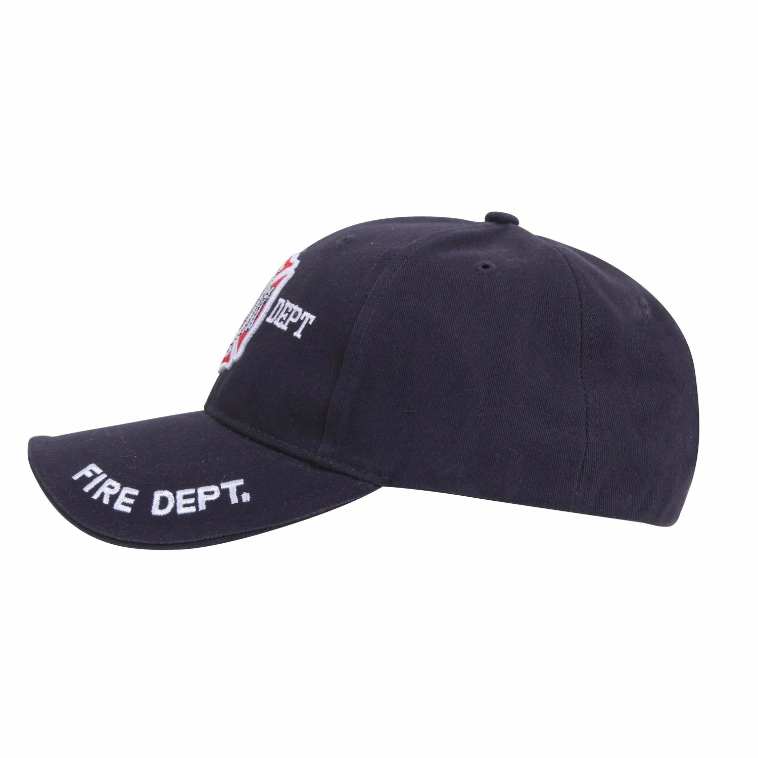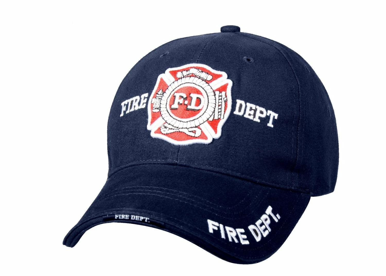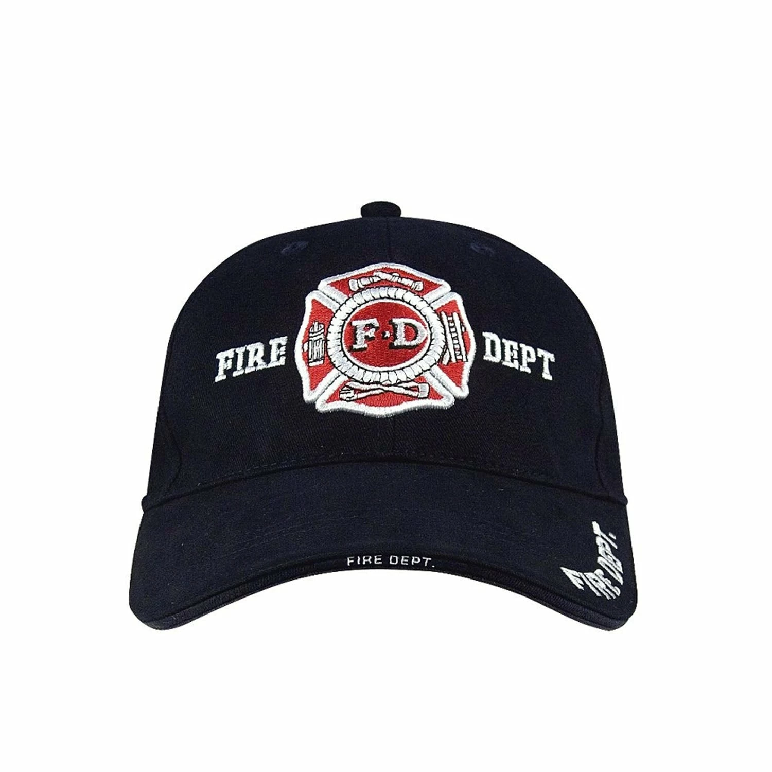 Rothco Deluxe Fire Department Low Profile Cap features a brushed cotton twill with raised 3-D embroidered “Fire Department” text and Maltese Cross on the front panel and brim just has text. The cap features a sandwich bill and back strap insignia with an adjustable hook and loop closure.