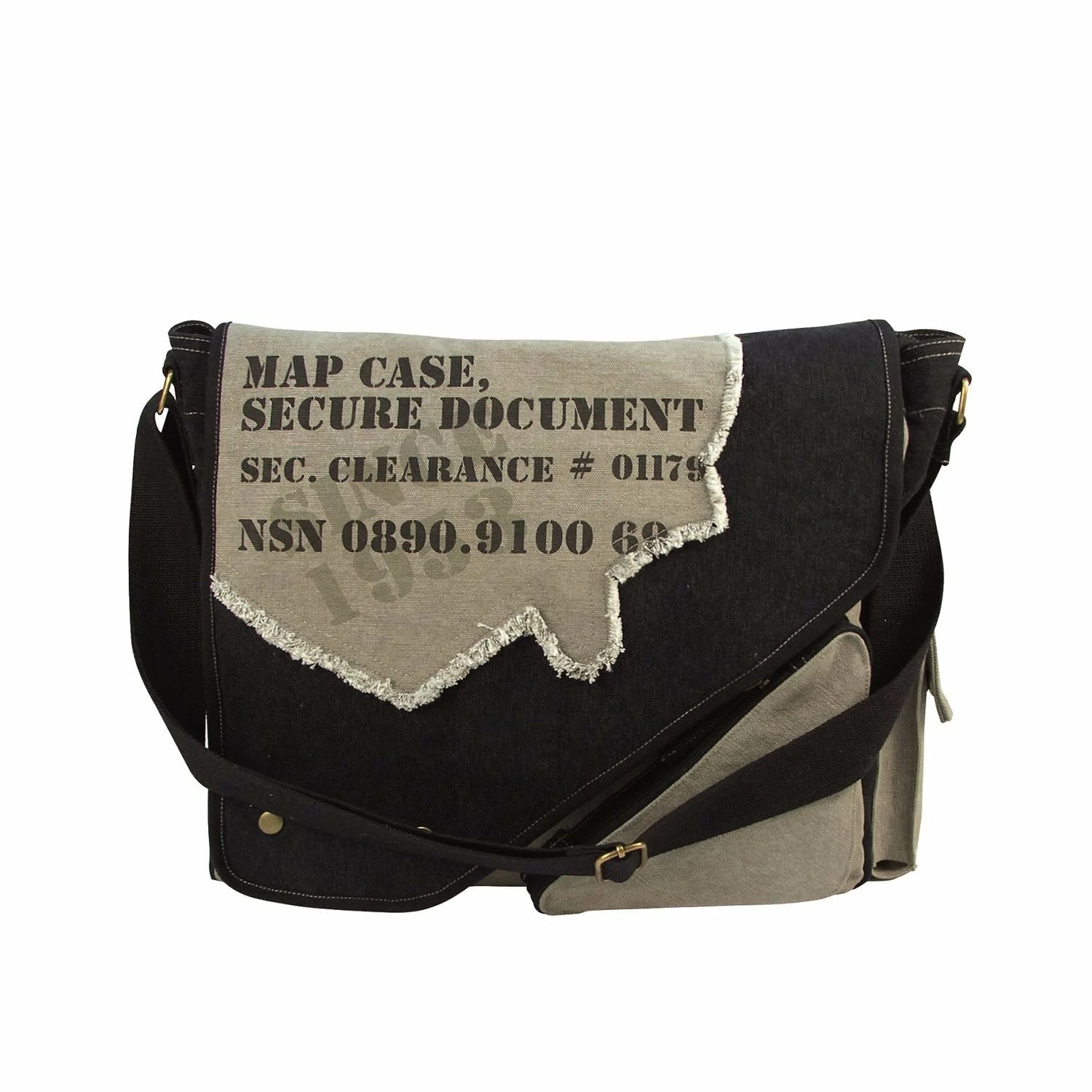 Prepare for compliments on this unique Vintage Canvas 2-tone Imprinted Map bag. This bag is made from a soft-washed cotton canvas, and has plenty of gear storage with a large main zipper closure compartment, inside zippered pocket, side snap pocket, front zippered pocket, and 2 outside pockets.