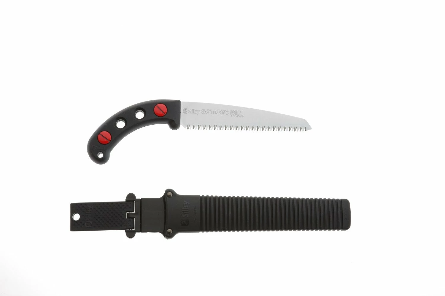 Features rust-resistant, hard chrome-plated, taper-ground blade with an impulse-hardened, non-set tooth design for greater cutting efficiency. Utilizes proprietary Silky MIRAI-ME (Smooth Cutting) Technology – The Teeth of the Future! The precision-ground, razor-sharp teeth with four cutting angles provide fast, clean and extremely smooth cutting action. Great combination of high performance blade with an integrated non-slip cushioned comfort rubber handle that really sticks in your hands. Durable black polypropylene sheath with belt clip is included. Exceptional design, strength, balance and superior finish quality. Ideal for all pruning tasks. Made in Japan. GOMTARO is available in two teeth sizes/configurations (tpi – teeth per inch): 7 tpi – Large Teeth and 11 tpi – Fine Teeth, and five blade lengths: 7-inch (180 mm), 8-1/3-inch (210 mm), 9-1/2-inch (240 mm), 10-2/3-inch (270 mm) and 11-4/5-inch (300 mm).