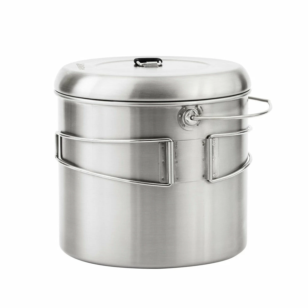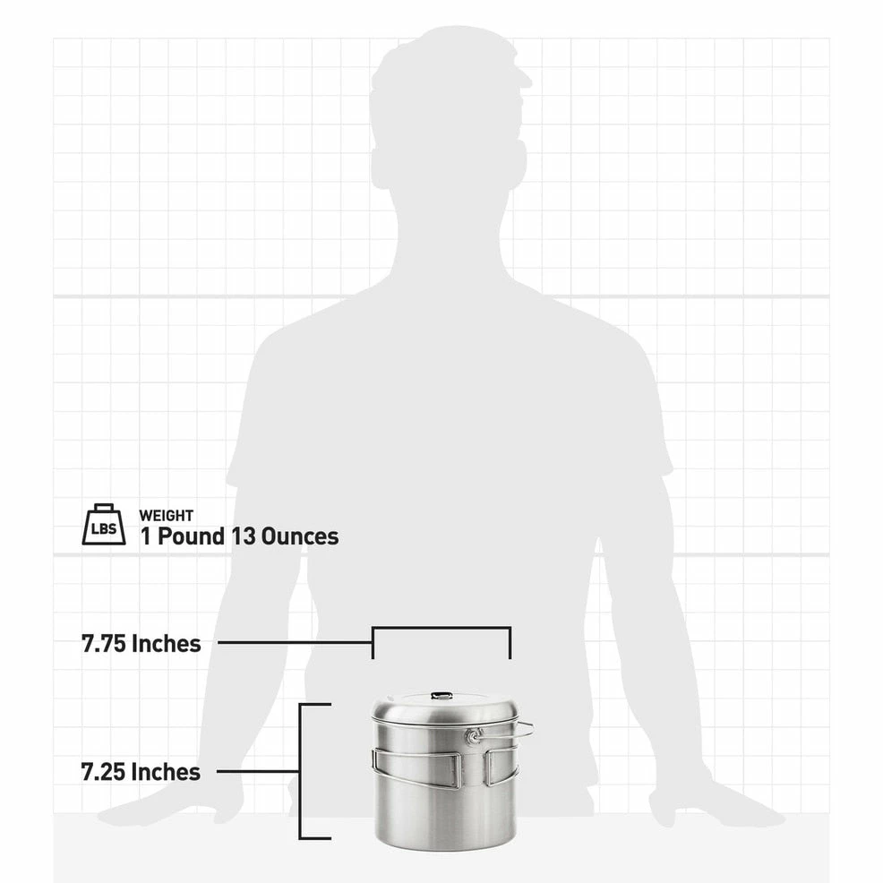 Solo Stove Campfire nests inside this all stainless steel 4000mL pot for compact storage.