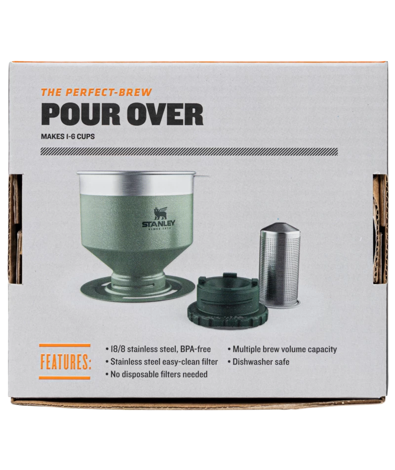 For those who take their coffee seriously, The Perfect-Brew Pour Over is, well, perfect. It features an easy-to-clean filter you can use, remove and reuse again—no disposable filters needed. Just spoon in your favorite medium-ground coffee, saturate with hot water, and let the pour over do the rest. Made to work with most Stanley mugs and bottles, so you can brew and be on your way.