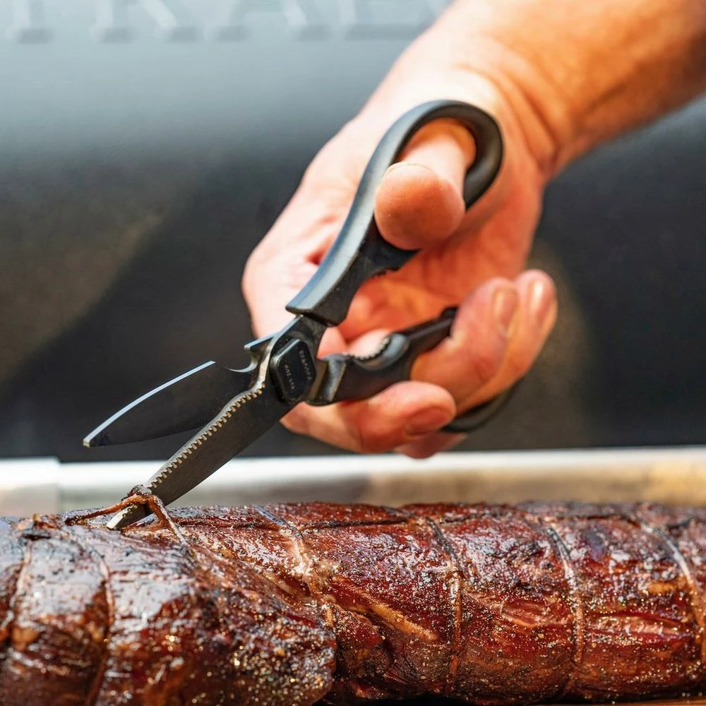 Quit fumbling with flimsy scissors and give your meat the respect it deserves with Traeger BBQ Shears. Titanium-coated blades cut effortlessly through skin and bone, and they come apart for easy cleaning. Plus, a built-in bottle opener keeps the cold ones flowing.