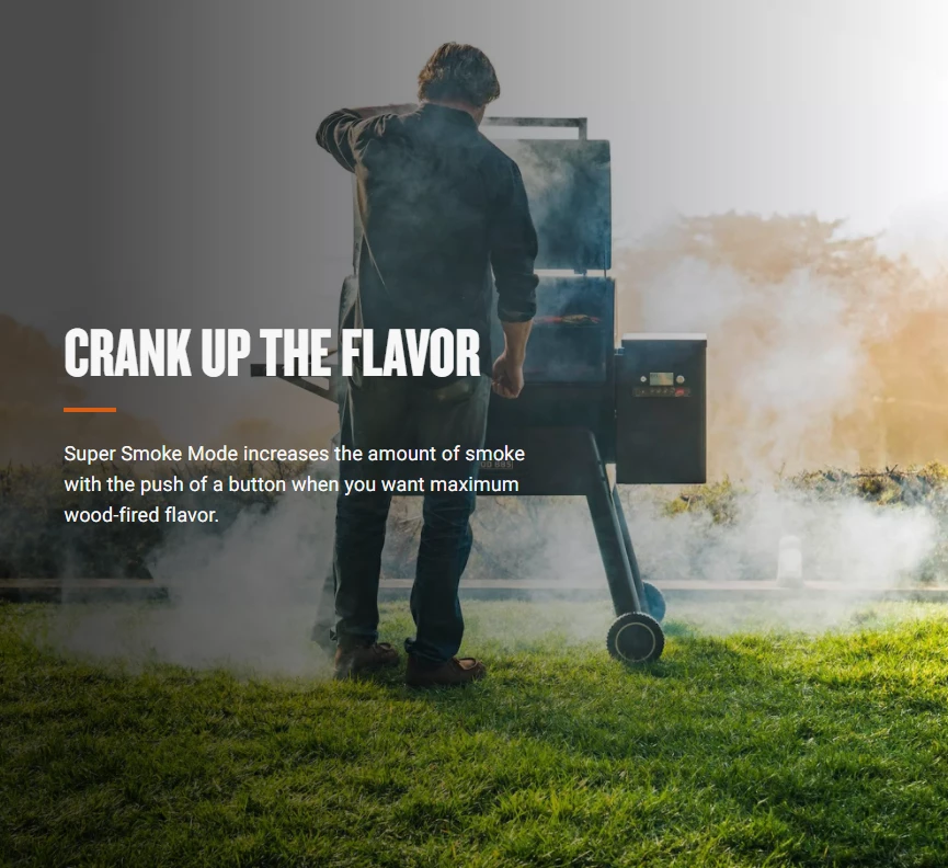 - Super Smoke Mode: increases the amount of smoke with the push of a button when you want maximum wood-fired flavour.