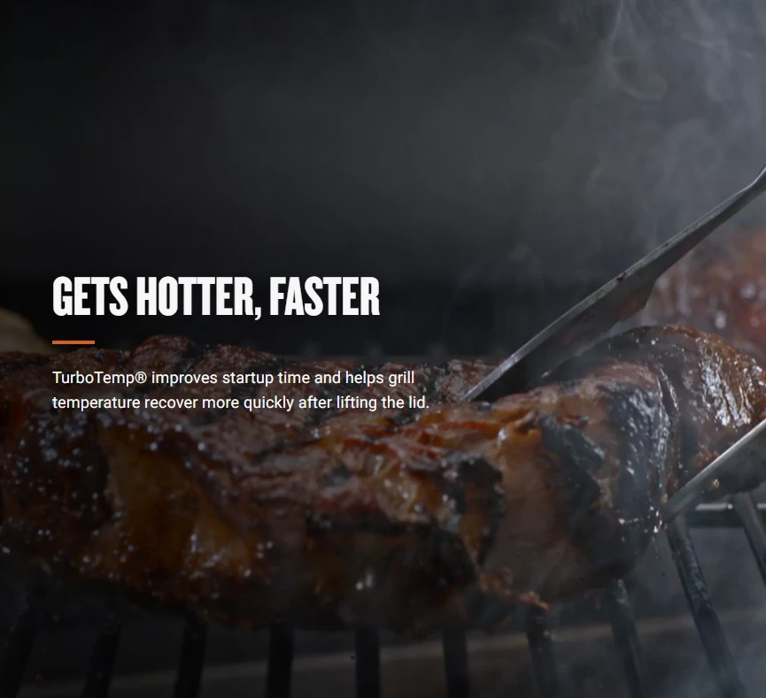 - Turbo Temp: improves startup time and helps grill temperature recover more quickly after lifting the lid