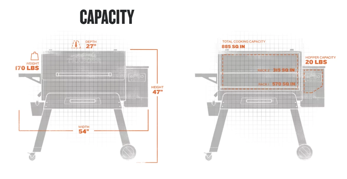 - Total cooking space: 885 sq. in.