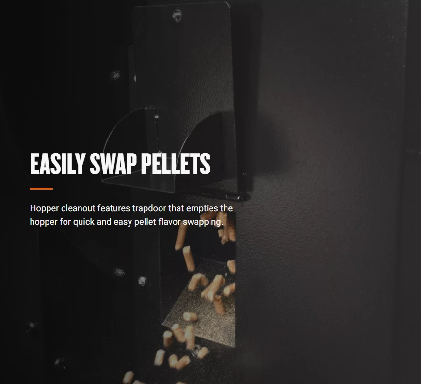 - Hopper Cleanout: trapdoor that empties the hopper for quick and easy pellet flavour swapping