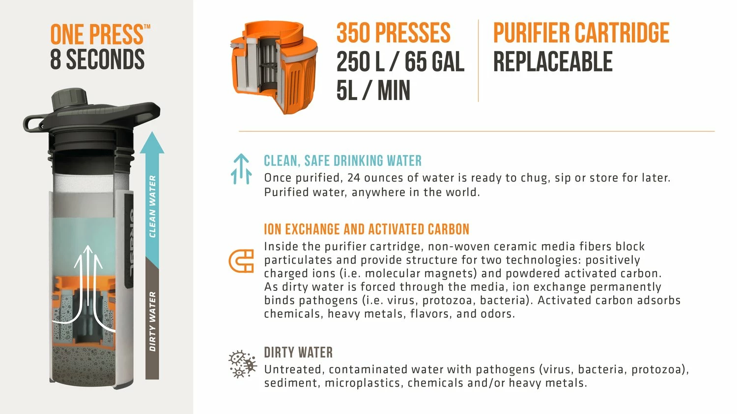- Removes: waterborne pathogens (99.99% of viruses, 99.9999% of bacteria, 99.9% of protozoan cysts), including Rotavirus, Hepatitis A, Norovirus, Giardiasis, Cryptosporidium, E. Coli, Cholera, Salmonella, Dysentery, and more