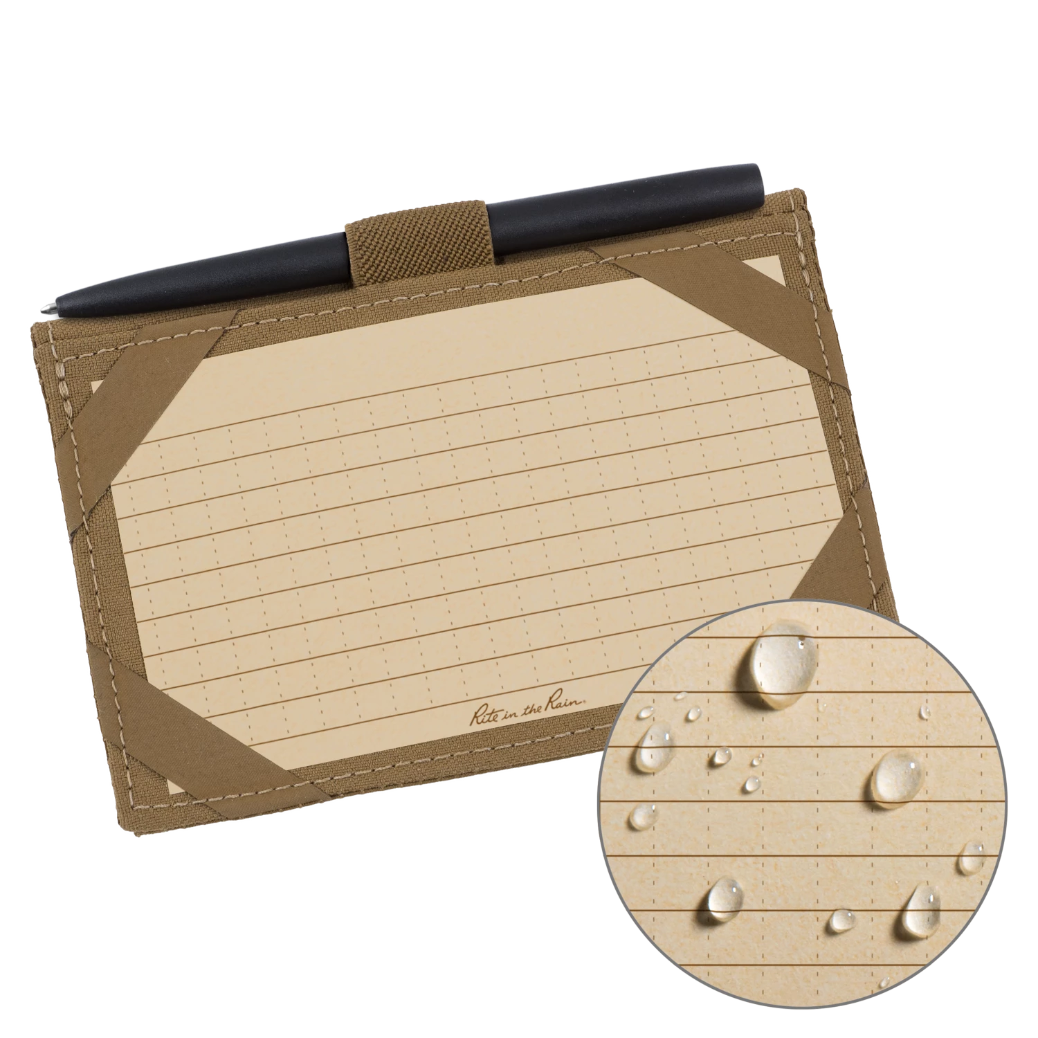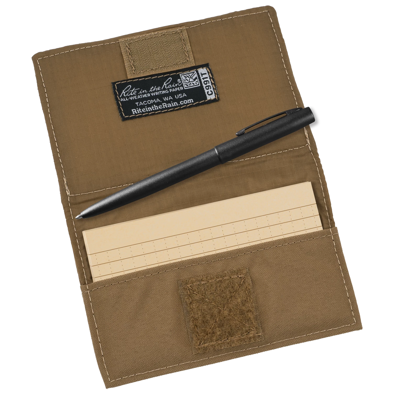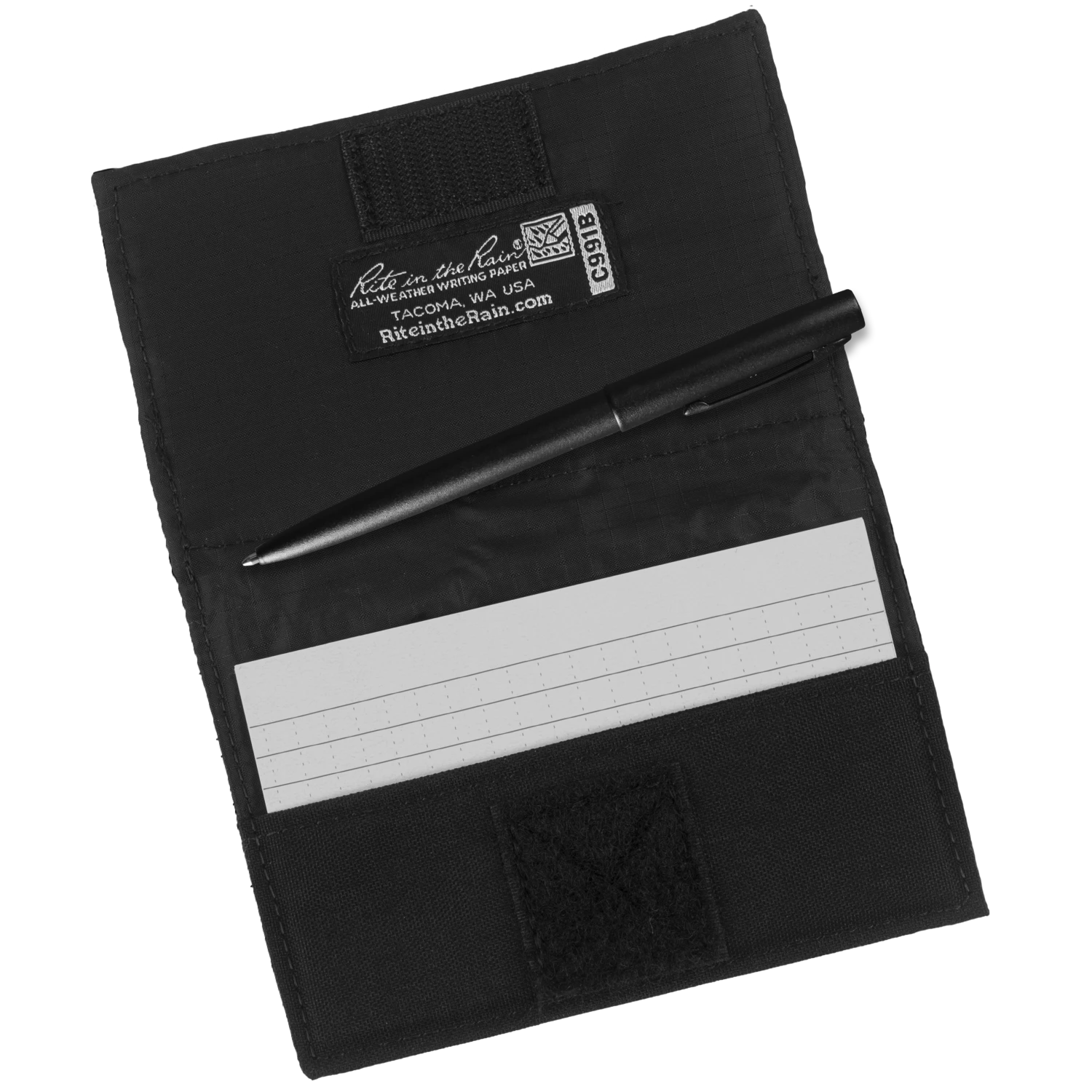 Keep your Rite in the Rain 3 in x 5 in index cards organized with this tough CORDURA fabric pocket wallet kit. Kit includes CORDURA fabric wallet, 100 Rite in the Rain 3 in x 5 in index cards, and the no. 97 black metal all-weather pen.