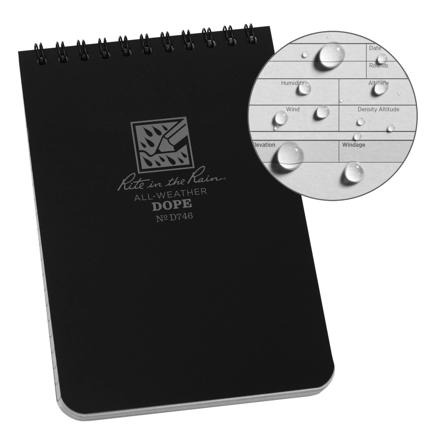 Waterproof Notebooks Rite In The Rain Weatherproof Top Spiral DOPE Logbook, 4 In. X 6 In.